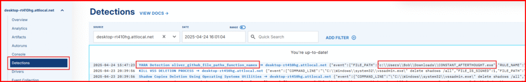 2. Head to the Detections tab to confirm we have new Detection for a YARA match